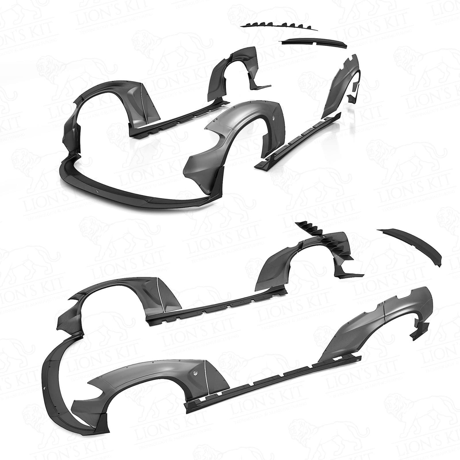 - Enthaltene Teile: vordere Kotflügelverbreiterungen, hintere Kotflügelverbreiterungen, Sicheln für vordere & hintere Kotflügelverbreiterungen, vordere Stoßstangensplitter, Seitenschwellensplitter, hintere Stoßstangensplitter, Entenschwanz, Dachhaifischwirbel, Schilder, die Befestigungselemente und andere Teile für die Installation (siehe Fotos);