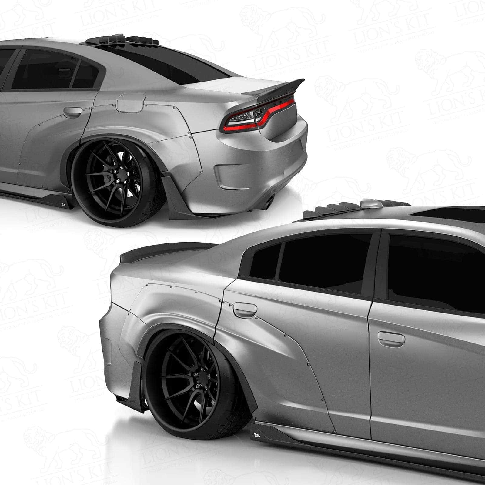 - Kotflügelverbreiterungen (Widebody) (+60 mm (2,4″) pro Kotflügel) – für alle Seitenschweller, nur für die serienmäßigen Stoßstangen S2 15-. Andere Stoßstangen – nur selbst montieren, wir können es nicht tun (Ihre Entscheidung zu kaufen oder nicht). Benötigt Trimmen der Bögen basiert;