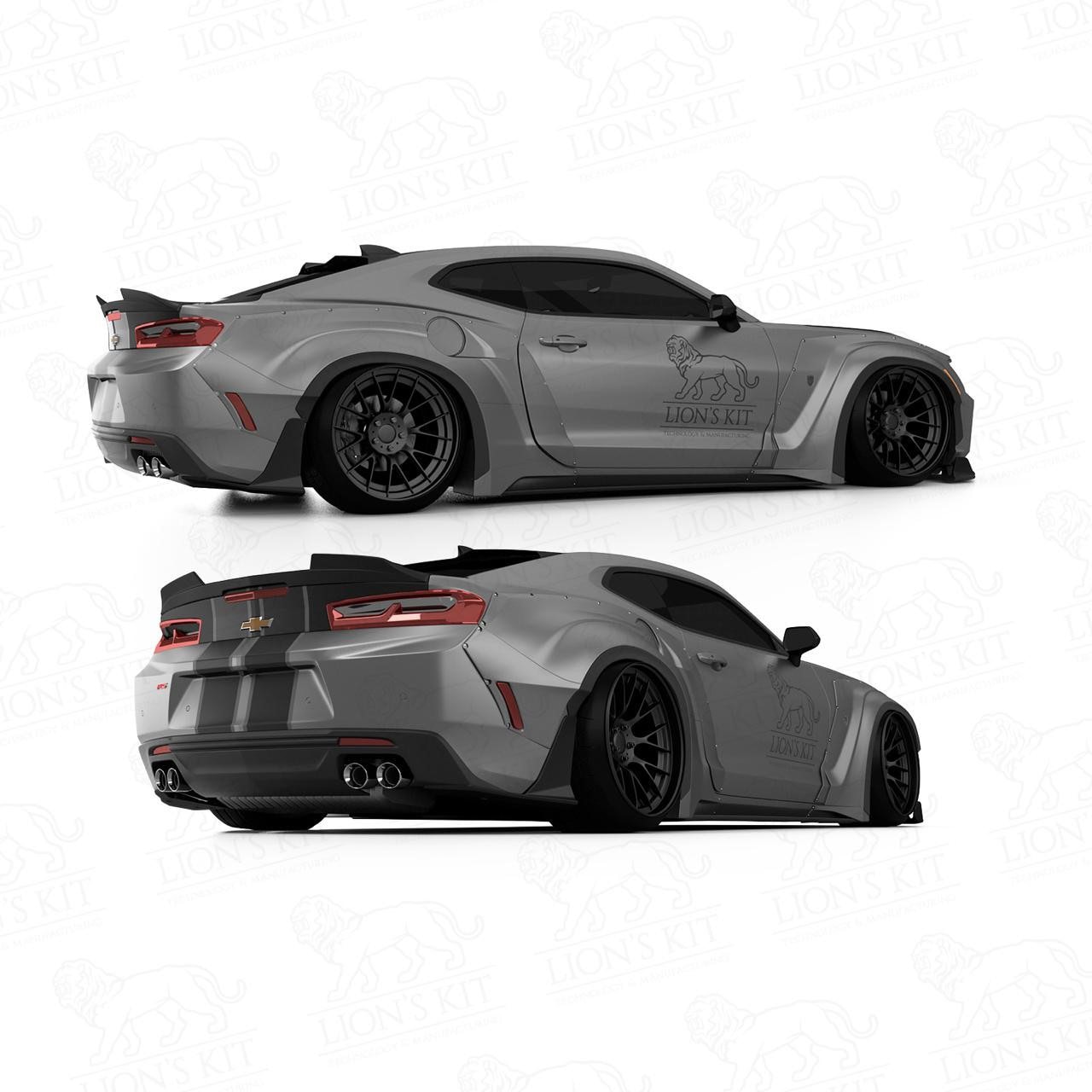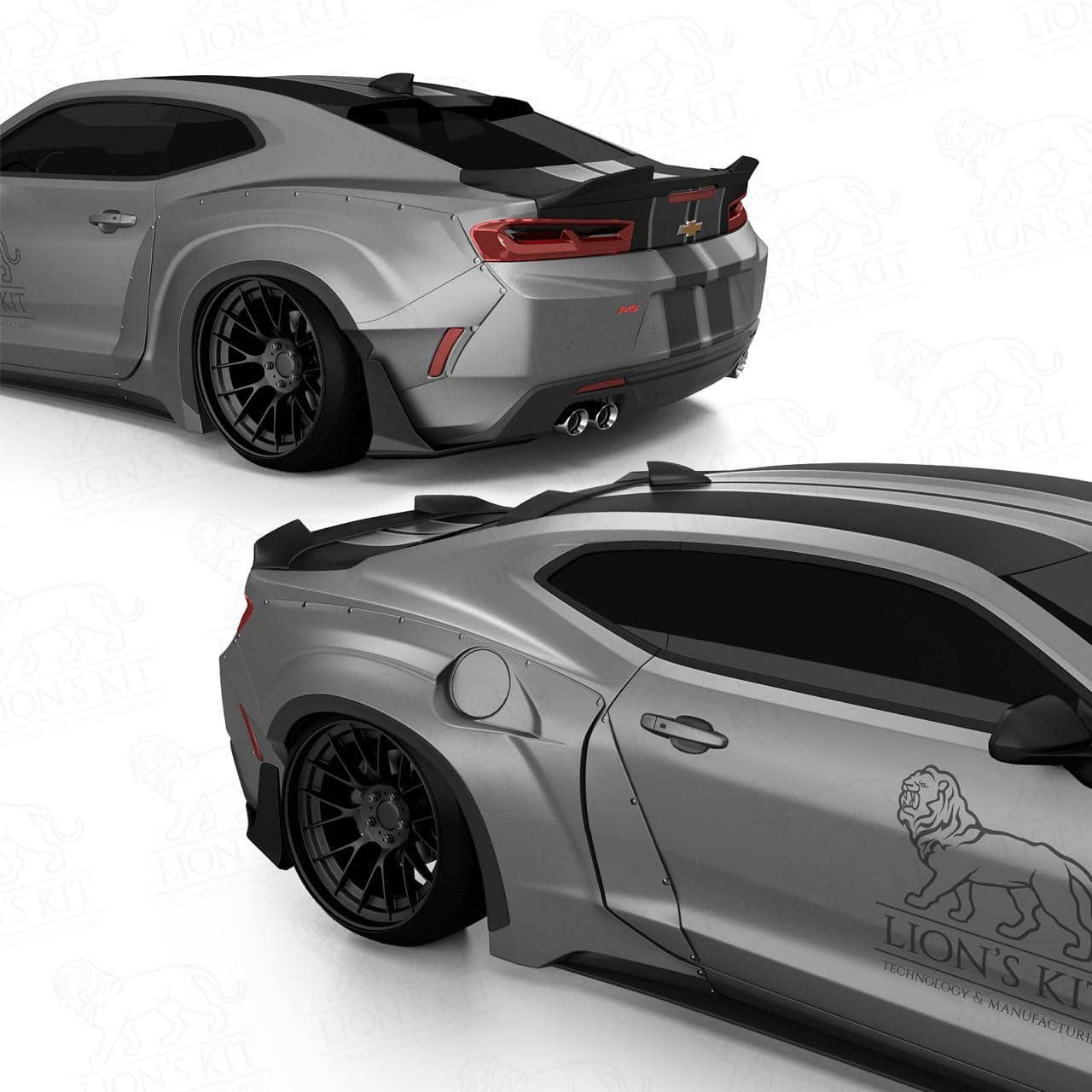 Rear fender flares (widebody) (+75 mm (2,5″) each fender) – only for default OEM side skirts S1/S2 16-…, only for default OEM rear bumpers S1/RS/SS/ZL1 16-18. Other bumpers – only yourself fitting, we can’t do it (your decision to buying or not). Needs trimming of based arches;